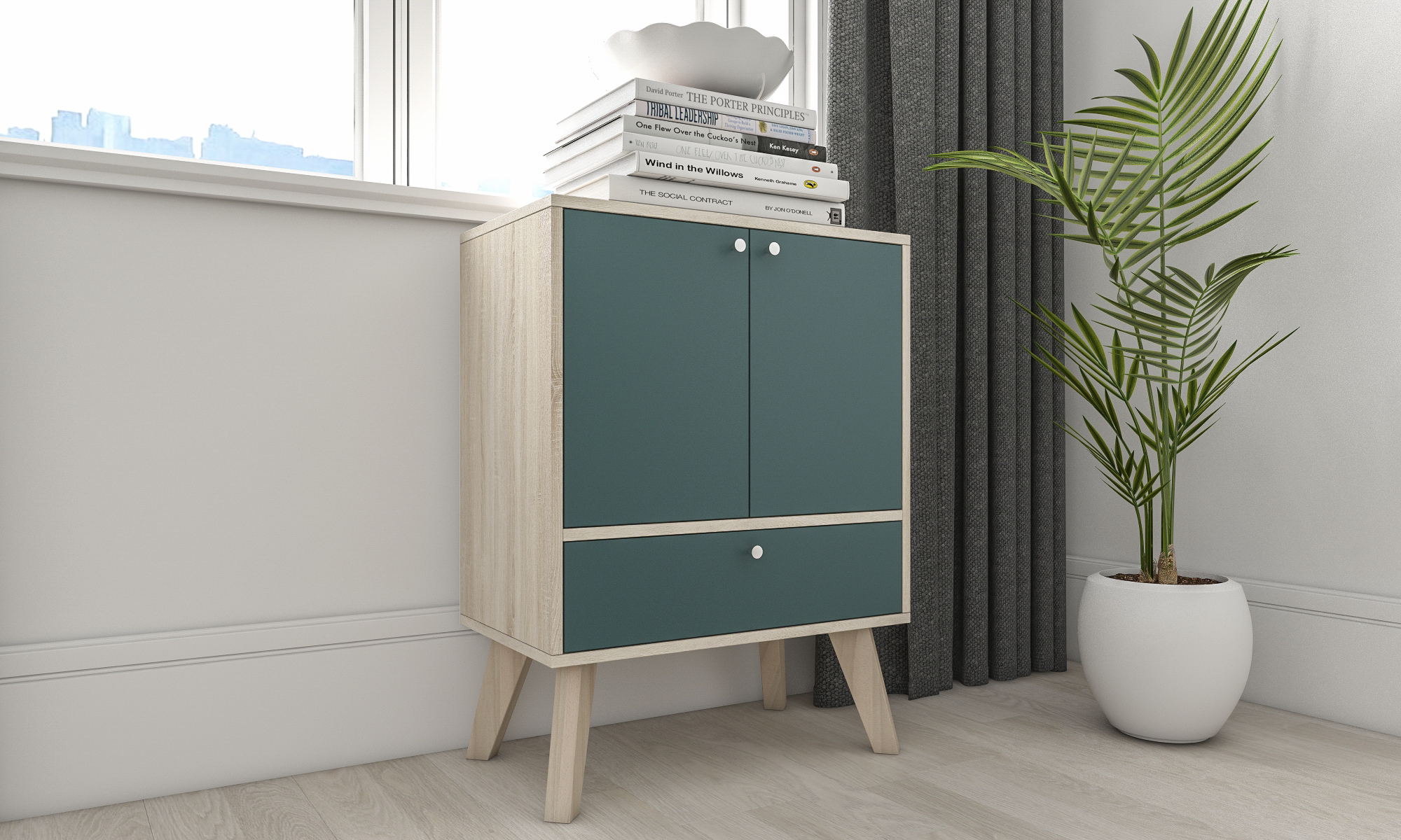 Используемый материал: корпус и фасад изготовлен из ЛДСП. Материал ножек - бук (массив дерева). Высота ножек 200 мм.