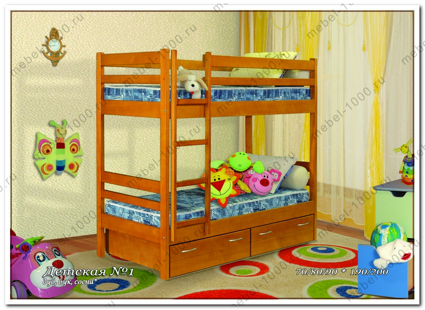 Деревянная 2-х ярусная кровать №1 с ящиками купить недорого в МосквеДеревянная 2-х ярусная кровать №1 с ящиками