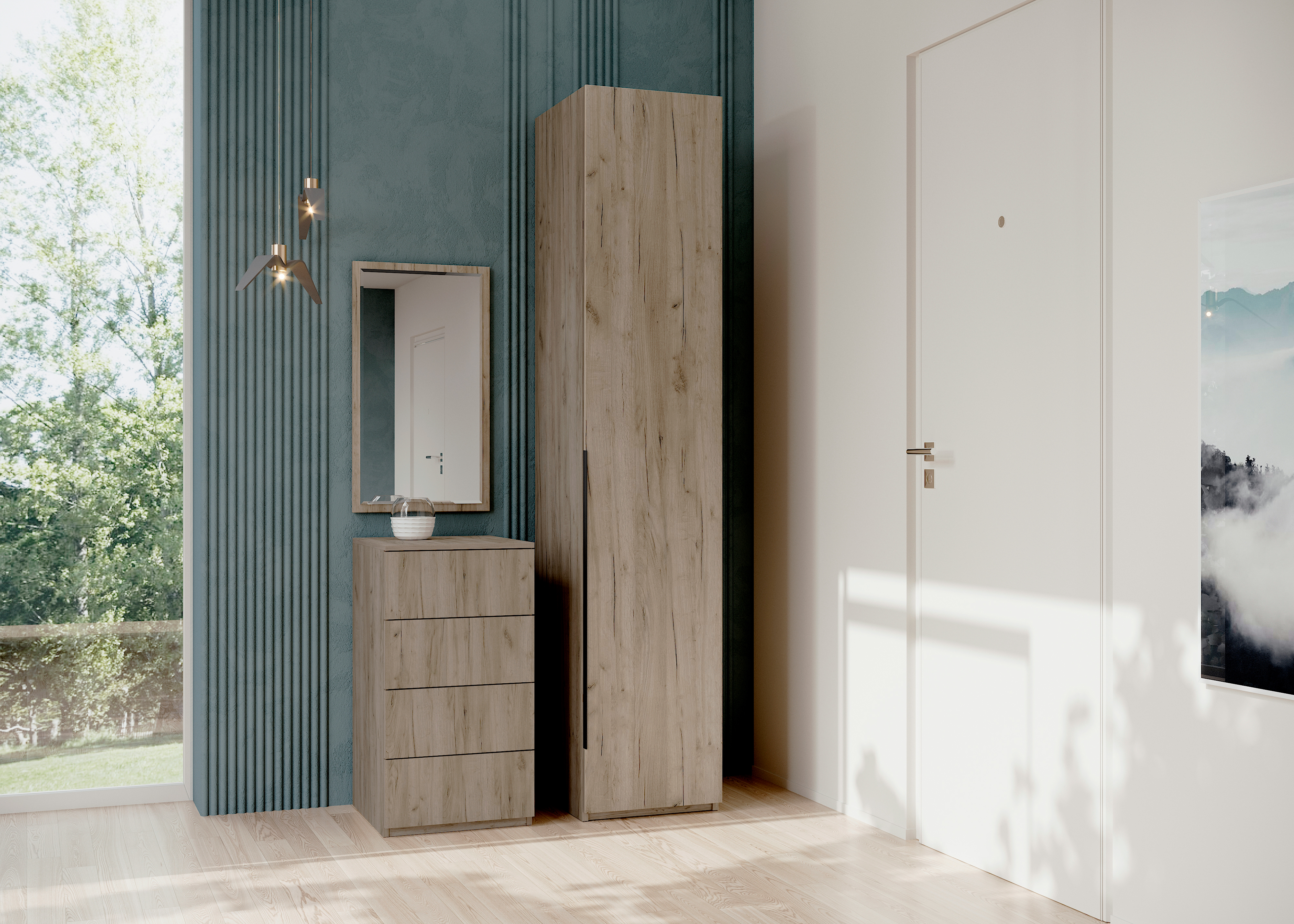 Во вкладке "Выбрать модули" Вы можете подобрать различные по комплектации шкафы, тумбы, комоды. Модульная система поможет подобрать вам необходимые модули, с учетом размеров помещения, планировки.