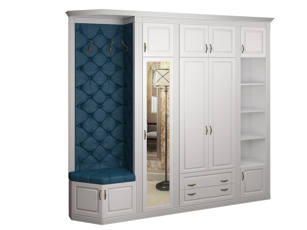 Во вкладке "Выбрать модули" Вы можете подобрать различные по комплектации шкафы, вешалки, угловой элемент. Модульная система поможет подобрать вам необходимые модули, с учетом размеров помещения, планировки.
