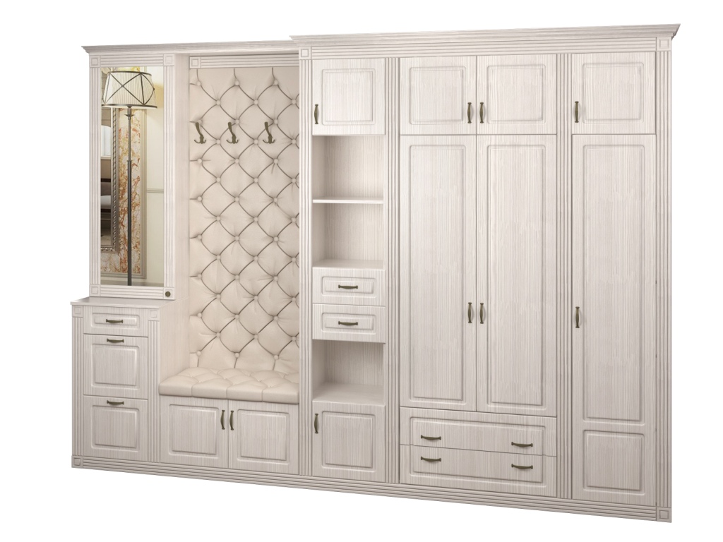 Во вкладке "Выбрать модули" Вы можете подобрать различные по комплектации шкафы, вешалки, угловой элемент. Модульная система поможет подобрать вам необходимые модули, с учетом размеров помещения, планировки.