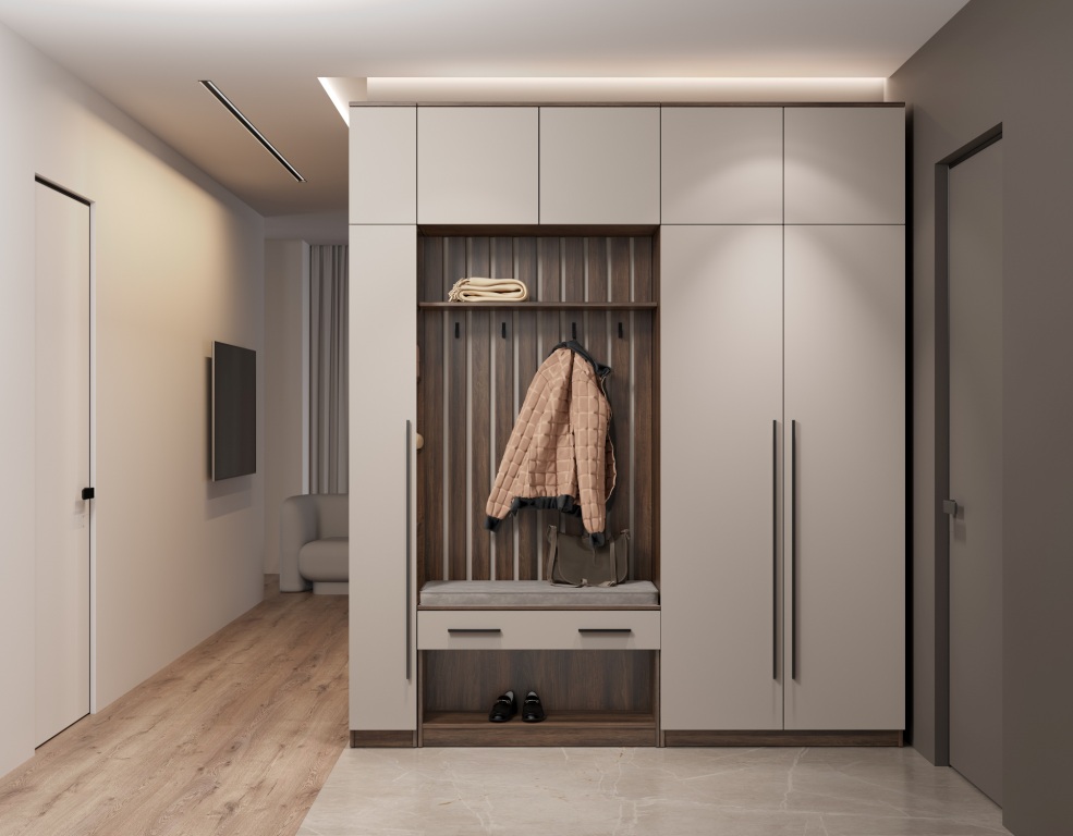 Во вкладке "Выбрать модули" Вы можете подобрать различные по комплектации шкафы, вешалки, колонки. Модульная система поможет подобрать вам необходимые модули, с учетом размеров комнаты, планировки.