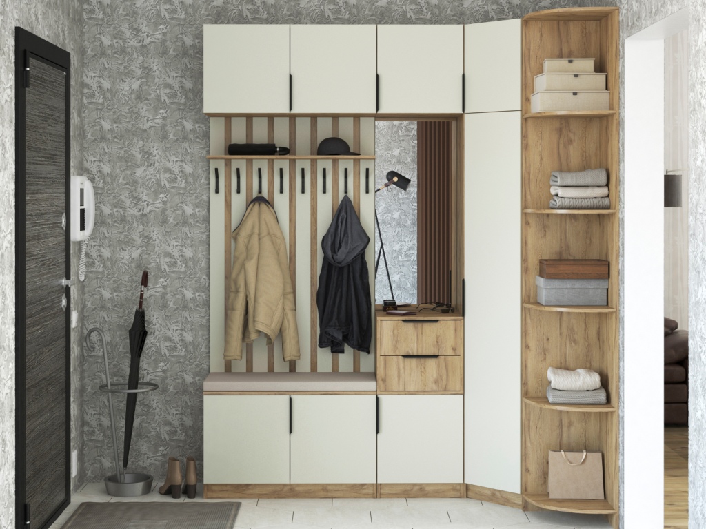 Во вкладке "Выбрать модули" Вы можете подобрать различные по комплектации шкафы, вешалки, угловой элемент. Модульная система поможет подобрать вам необходимые модули, с учетом размеров помещения, планировки.