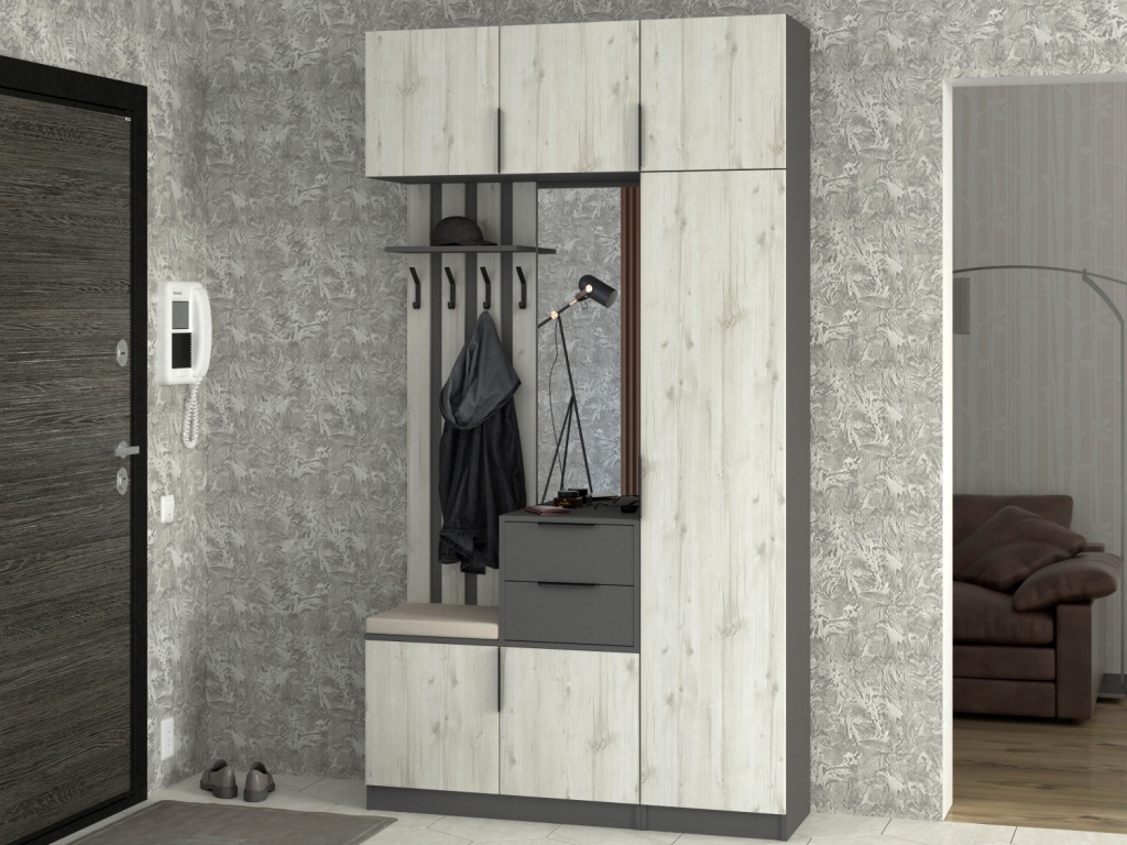 Во вкладке "Выбрать модули" Вы можете подобрать различные по комплектации шкафы, вешалки, угловой элемент. Модульная система поможет подобрать вам необходимые модули, с учетом размеров помещения, планировки.