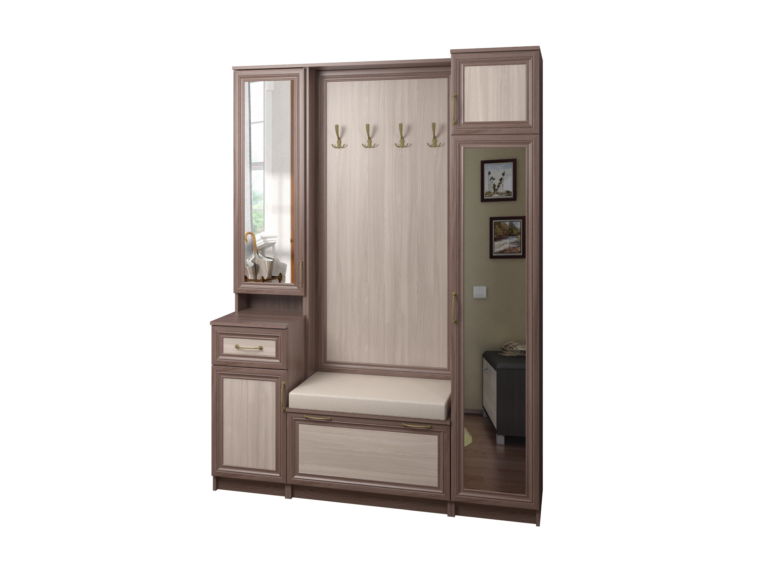 Используемый материал: ламинированный ДСП, ламинированное ДВП, зеркало, рамка МДФ, кромка 0,4 мм., мягкое сидение из кож зама или ткани на выбор, стандартная фурнитура