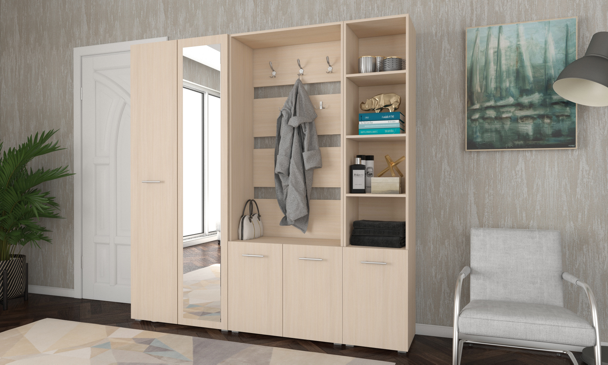 Используемый материал: ламинированный ДСП, ламинированное ДВП, зеркало, стандартная фурнитура