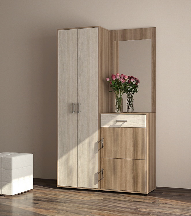 Используемый материал: ламинированный ДСП, ламинированное ДВП, зеркало, стандартная фурнитура