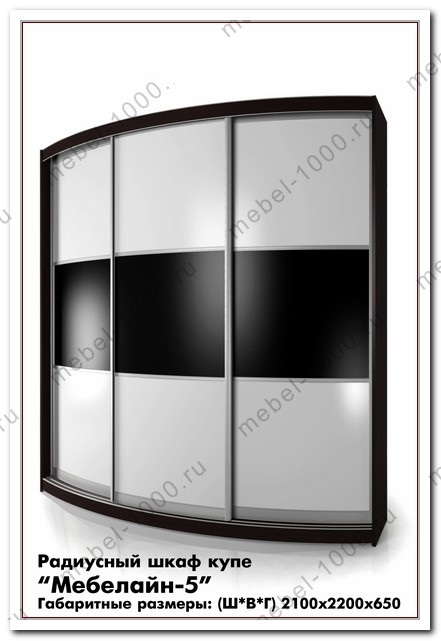 Радиусный шкаф купе "Мебелайн 5" купить недорого в МосквеШирина: 2100 мм.