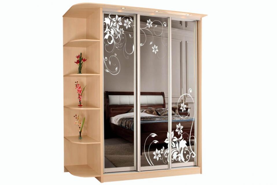 Используемый материал: корпус - ламинированное ДСП 16 мм, ламинированное ДВП; фасады - полностью алюминиевая конструкция люкс - Версаль (периметр каждого фасада в алюминиевом профиле - ручке), вставка - зеркало с пескоструйным рисунком