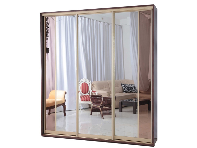 Используемый материал: корпус - ламинированное ДСП 16 мм, ламинированное ДВП; фасады - полностью алюминиевая конструкция люкс - Версаль (периметр каждого фасада в алюминиевом профиле - ручке), вставка - зеркала серебро/бронза.