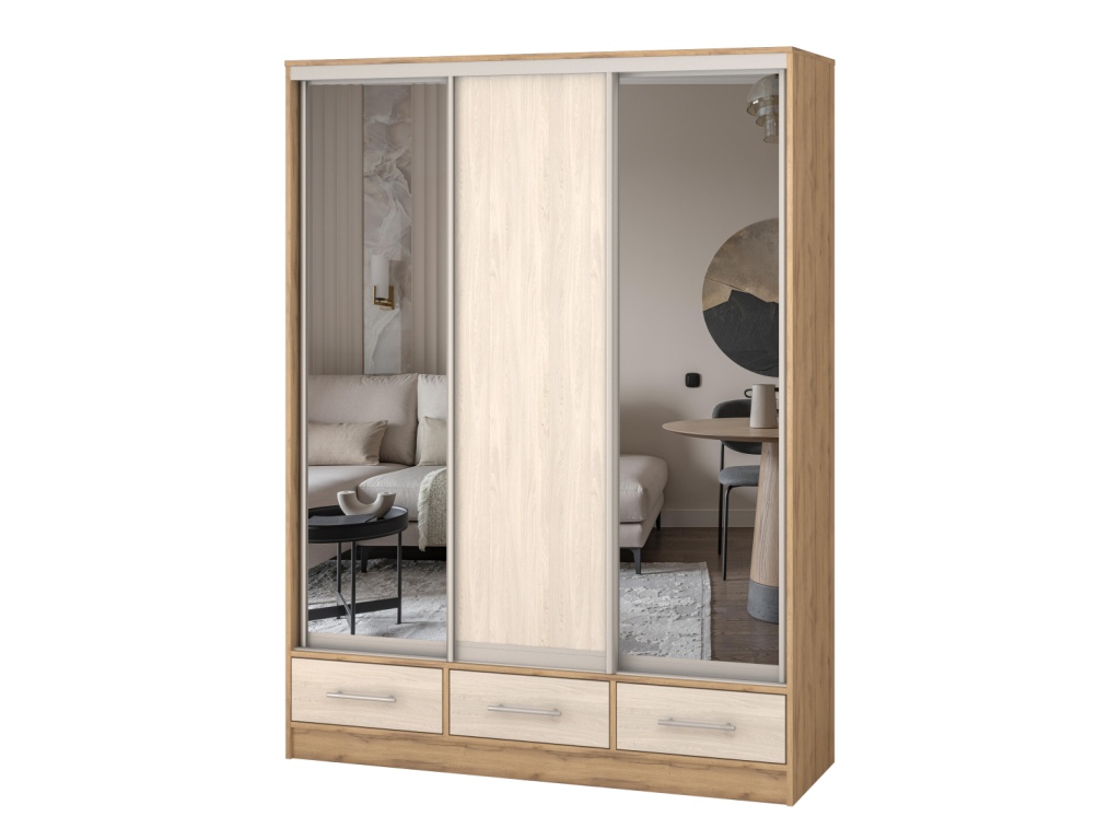 Шкаф купе 3-х дверный "Версаль" 3 ящика/ЛДСП/2 зеркала