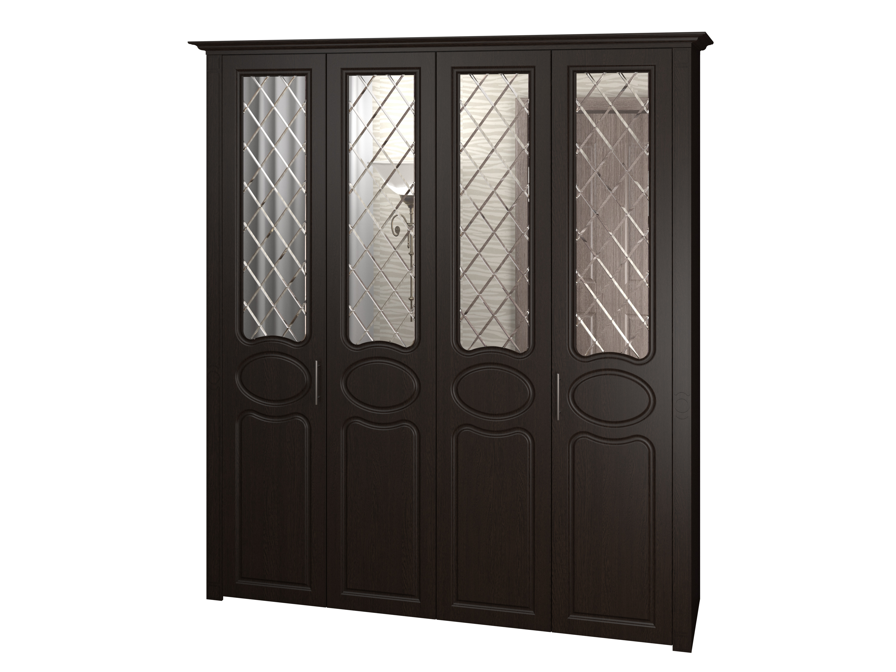 Шкаф 4-х дверный "Дегар Люкс" складные глухие фасады с зеркалом гравировка