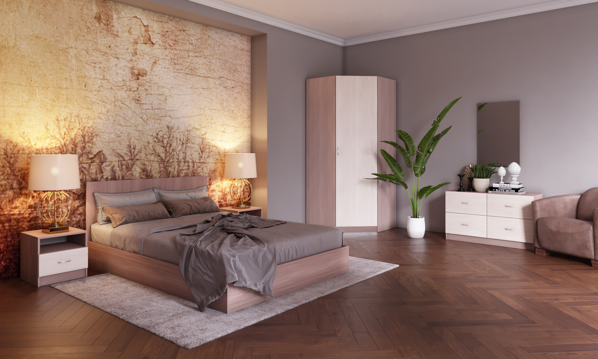 Стоимость спальни указана без учета матраца. Зеркало над комодом (на фото) не входит в стоимость, цена по запросу.