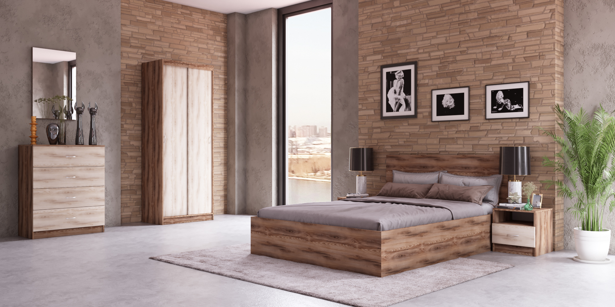 Стоимость спальни указана без учета матраца. Зеркало над комодом (на фото) не входит в стоимость, цена по запросу.