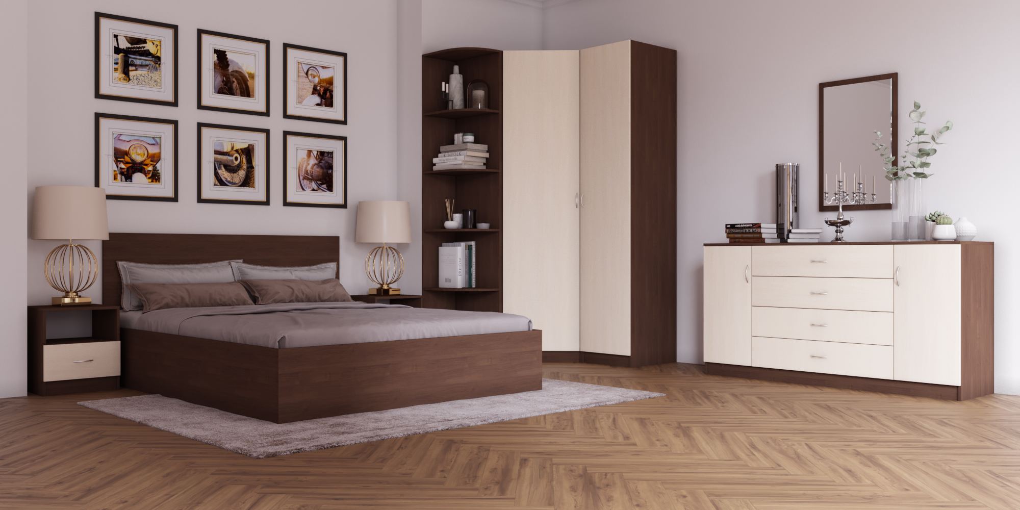 Стоимость спальни указана без учета матраца. Зеркало над комодом (на фото) не входит в стоимость, цена по запросу.