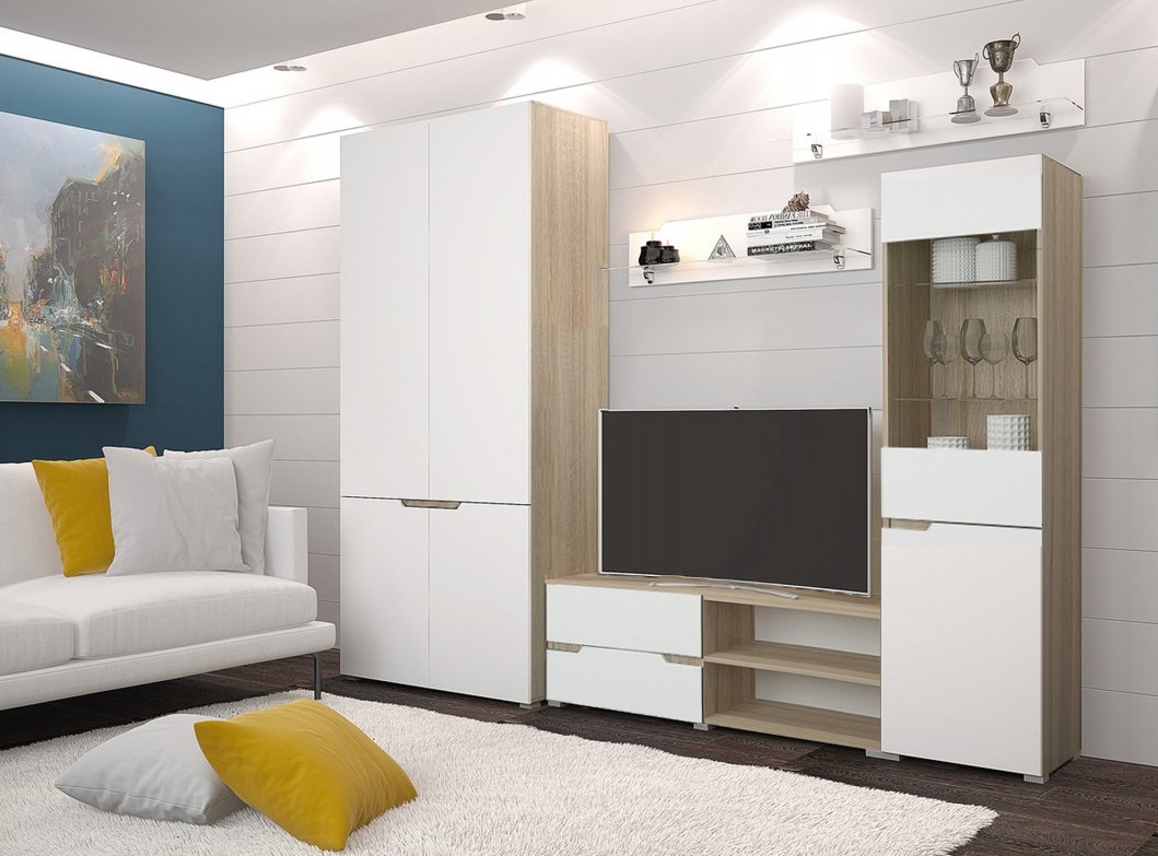 Модульная стенка "Анталия-1 с 2-х дверным шкафом" для гостиной недорого в МосквеМодульная стенка "Анталия-1 с 2-х дверным шкафом"