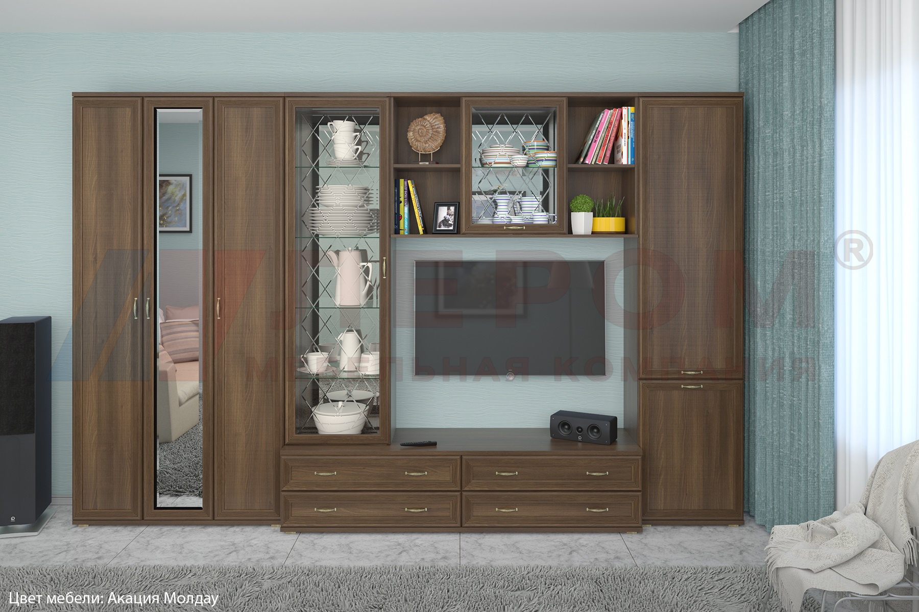 Модульная стенка для гостиной "Карина-9" для гостиной недорого в МосквеМодульная стенка для гостиной "Карина-9"