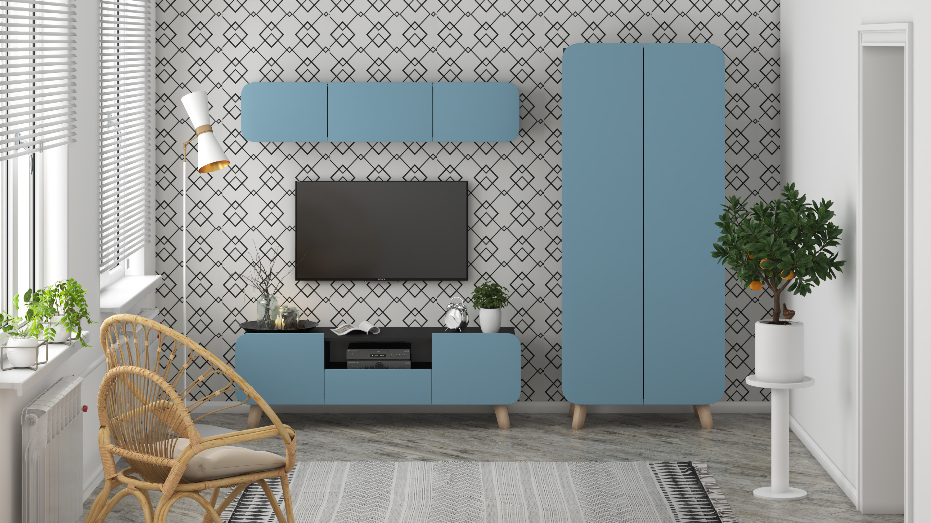 Модульная стенка для гостиной "Модерн Сканди-7" для гостиной недорого в Москве