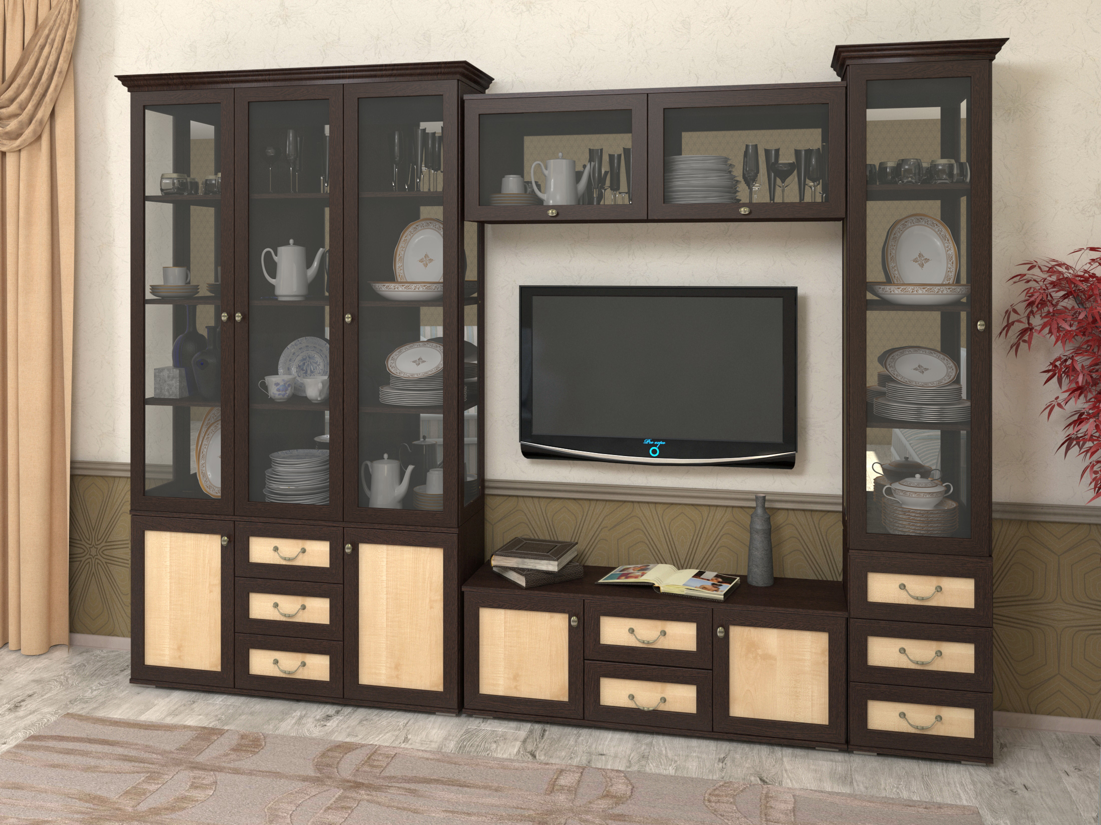Модульная стенка для гостиной "Витраж-20" для гостиной недорого в МосквеМодульная стенка для гостиной "Витраж-20"