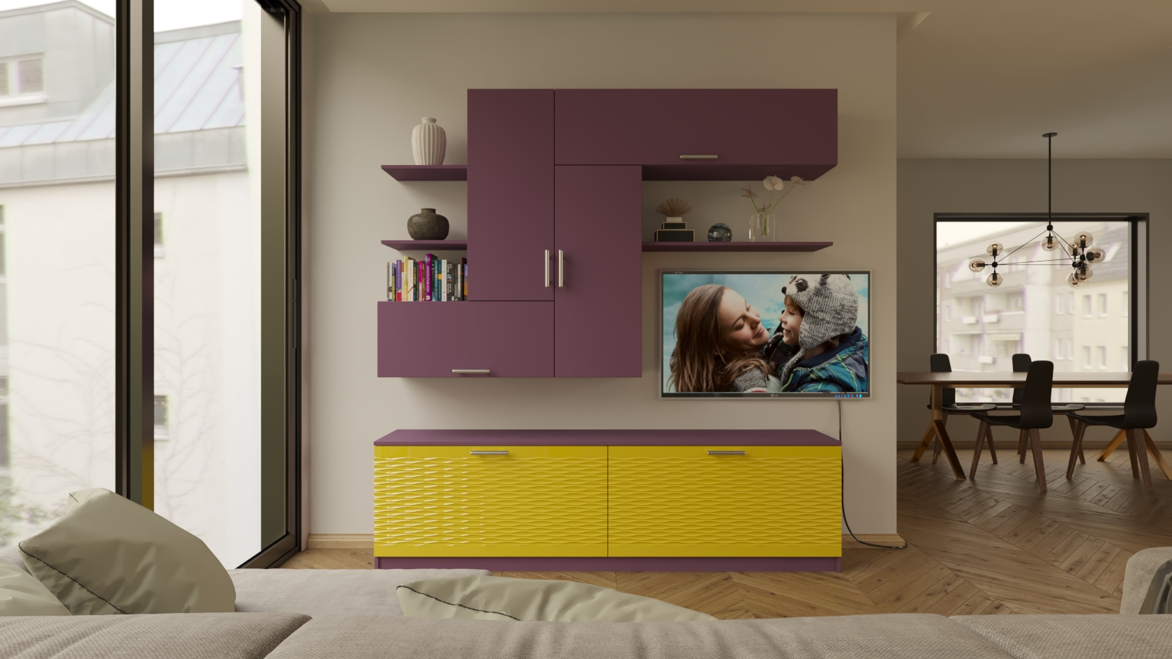 Используемый материал: корпус ламинированное ДСП; фасады комбинированные: ЛДСП/рельефный МДФ, ДВП, стандартная фурнитура