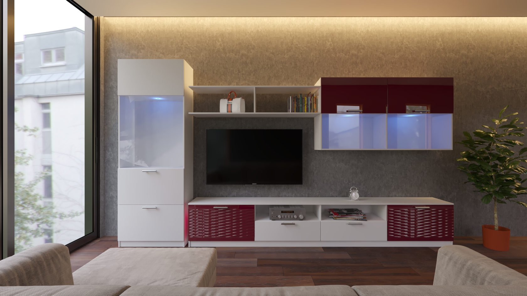 Стенка для гостиной "Глянец 3Д-23" для гостиной недорого в МосквеСтенка для гостиной "Глянец 3Д-23"
