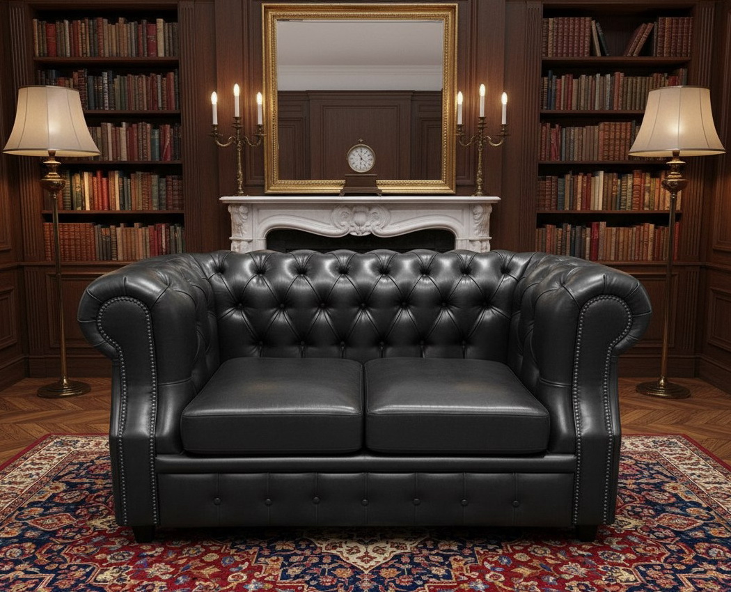 Диван "Честер Лофт" черный 2-х местный купить недорого в МосквеСтоимость категорий ткани: