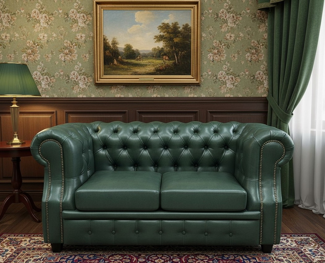 Диван "Честер Лофт" зеленый 2-х местный