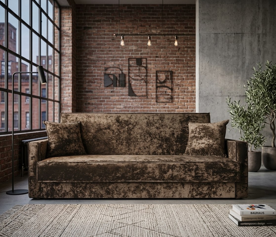 Диван книжка "Лофт с узкими подлокотниками" плюш коричневый купить недорого в МосквеСтоимость категорий ткани: