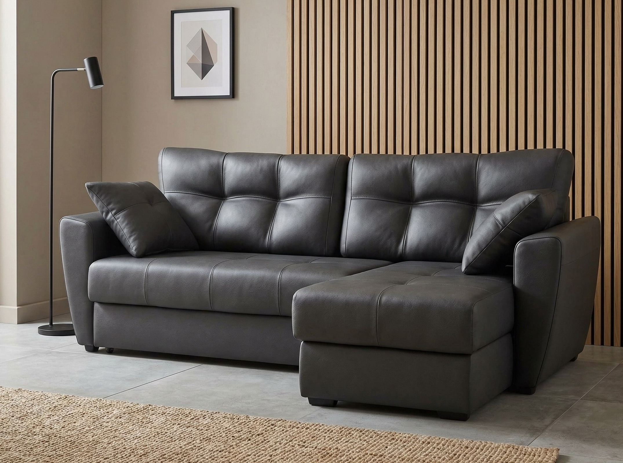 Угловой диван "Амстердам кожа черный"