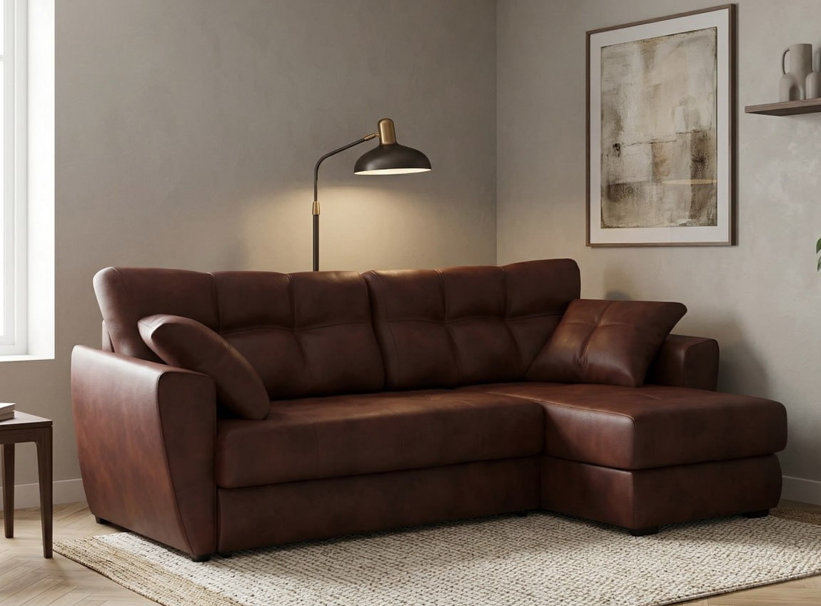 Угловой диван "Амстердам кожа коричневый" купить недорого в МосквеСтоимость категорий ткани: